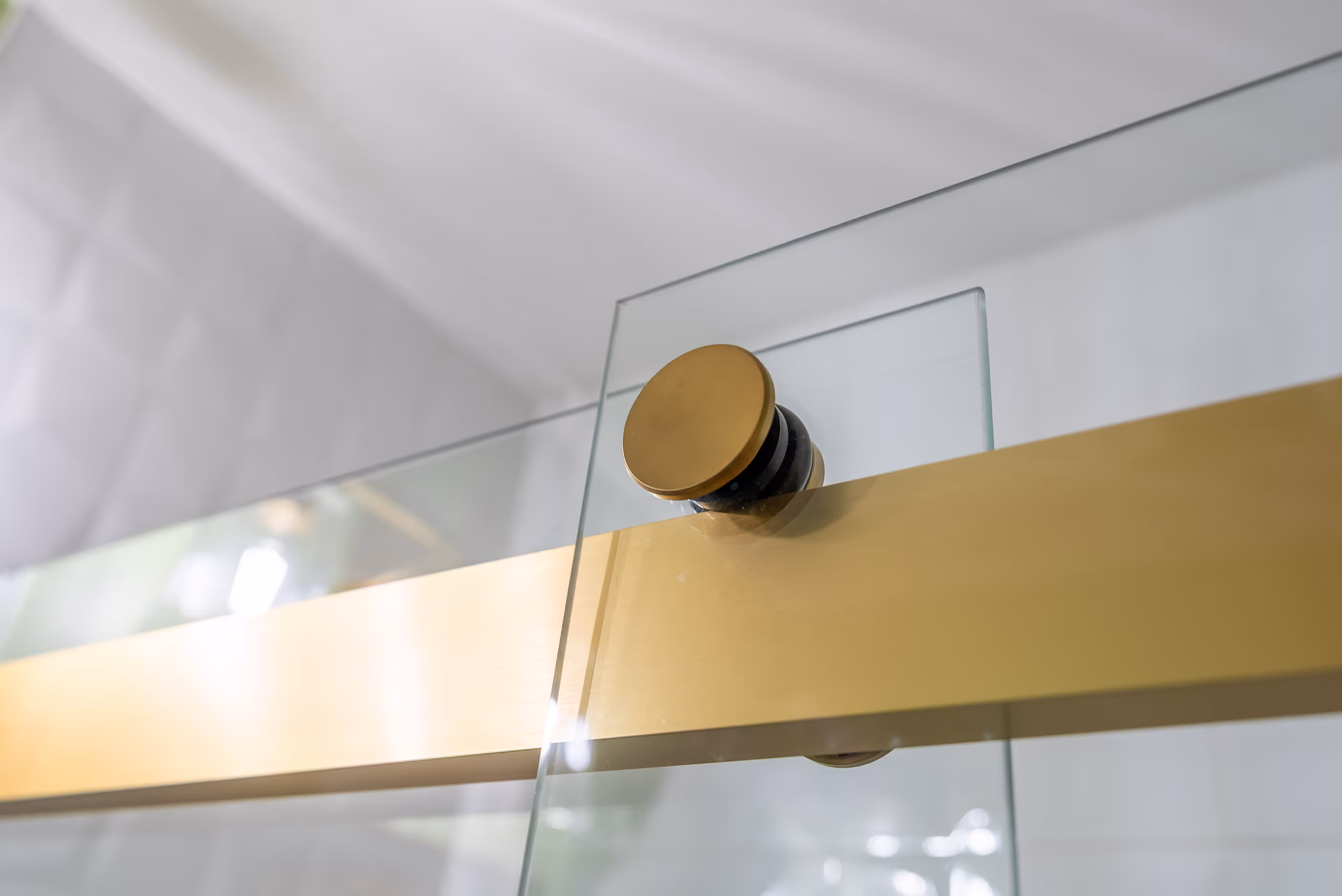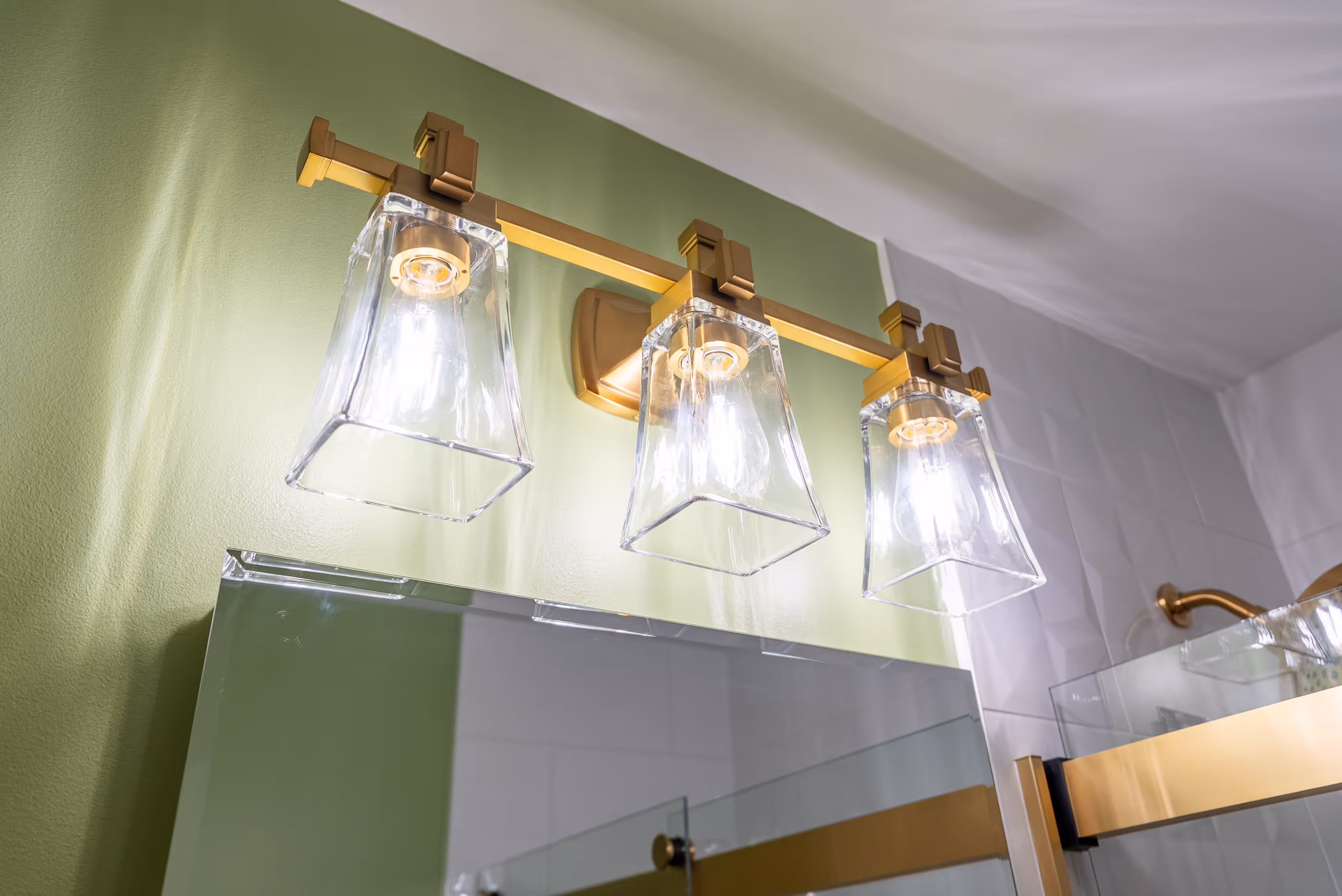 Warm floors, gold fixtures, a built-in niche, and no detail left unfinished. In-floor heat, comfort height throughout, and a cast iron tub worth keeping.